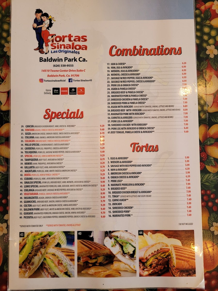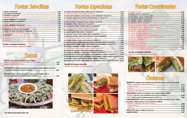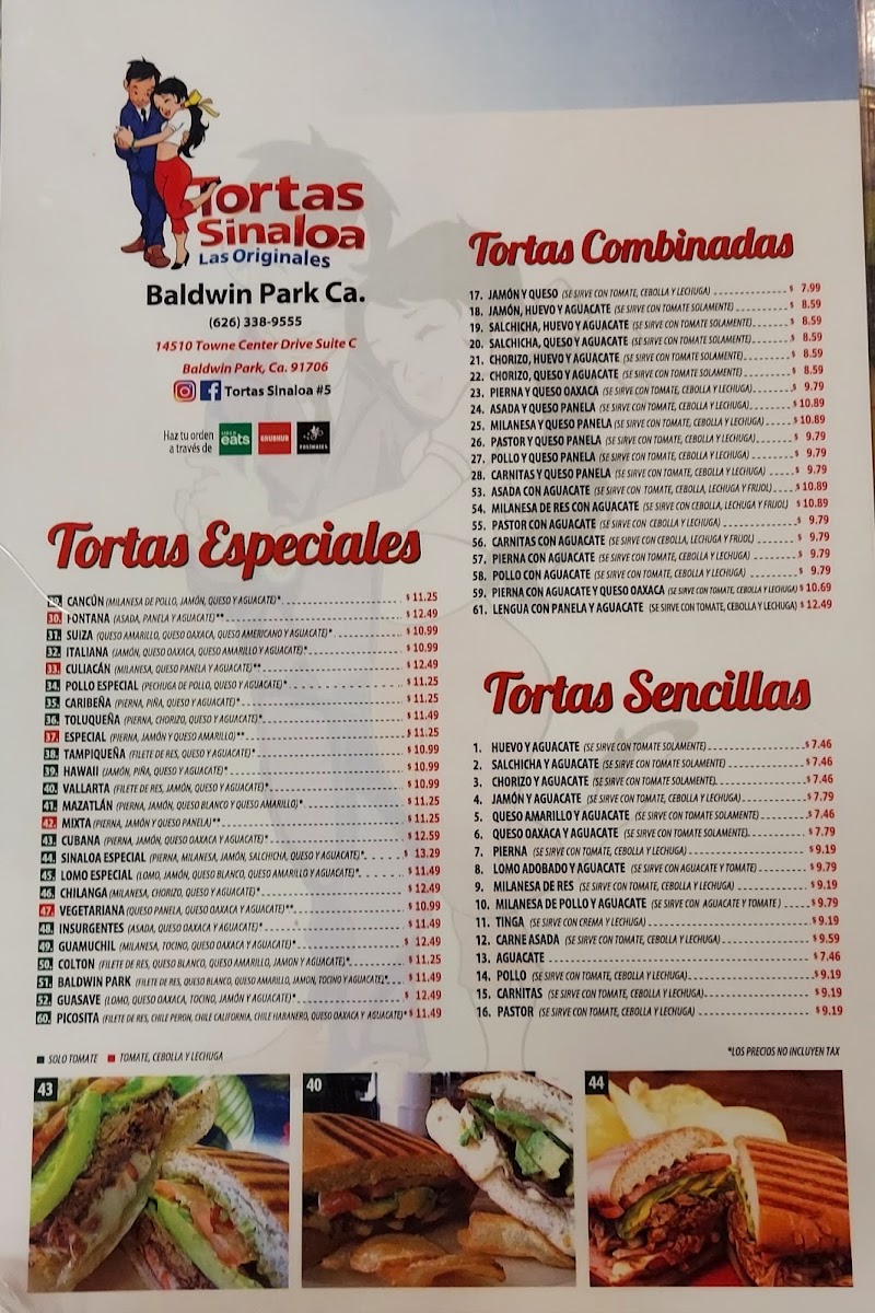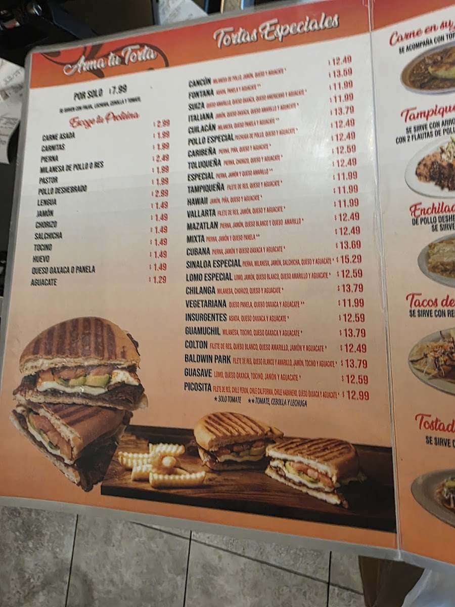 Tortas Sinaloa Menu